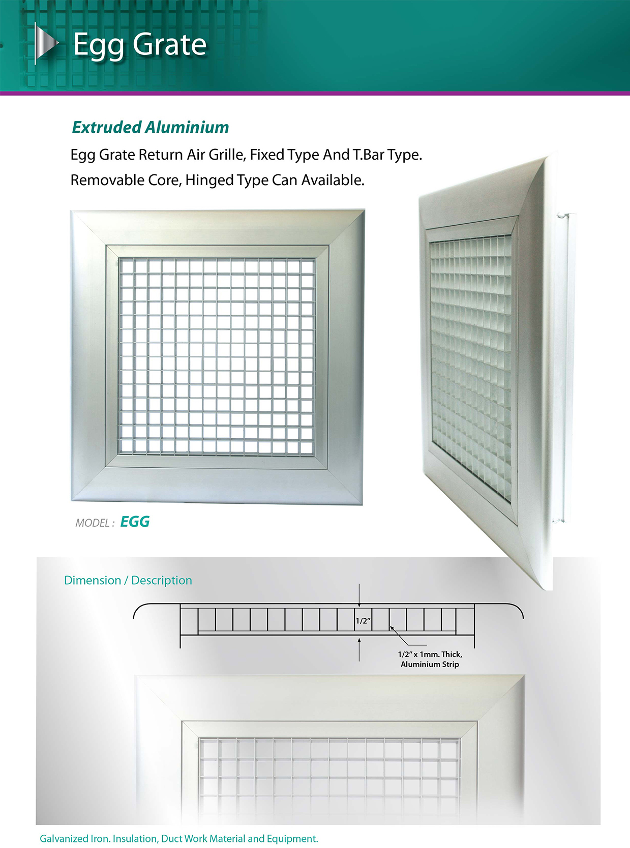 Egg Grate Return Air Grille, Fixed Type and T.Bar Type. Removable Core, Hinged Type Can Available.
