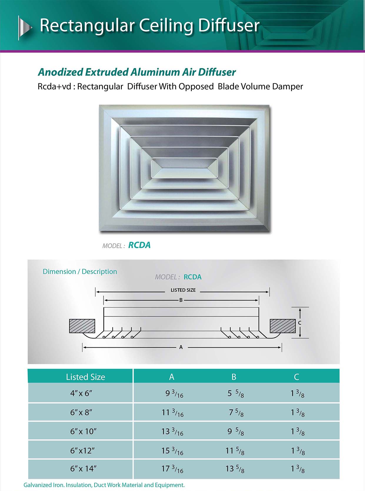RCDA+VD: Rectangular Diffuser with Opposed Blade Volume Damper